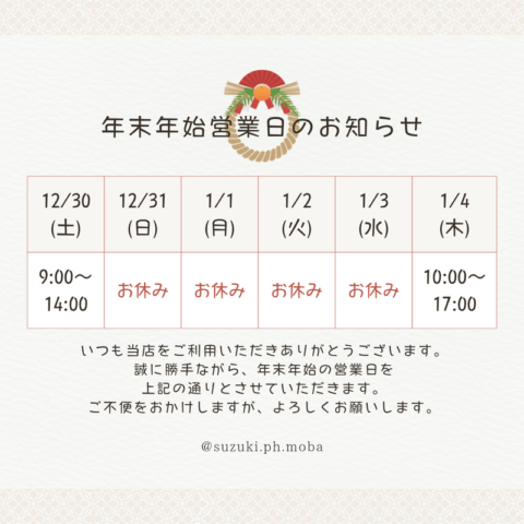 【年末年始の営業について】